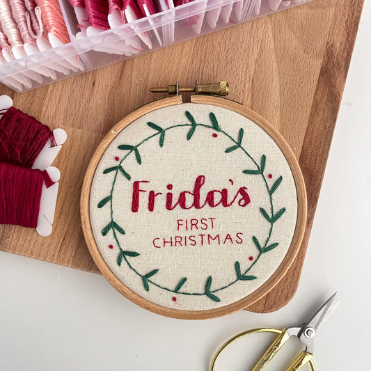 Baby's First Christmas Personalised Hand Embroidery Hoop