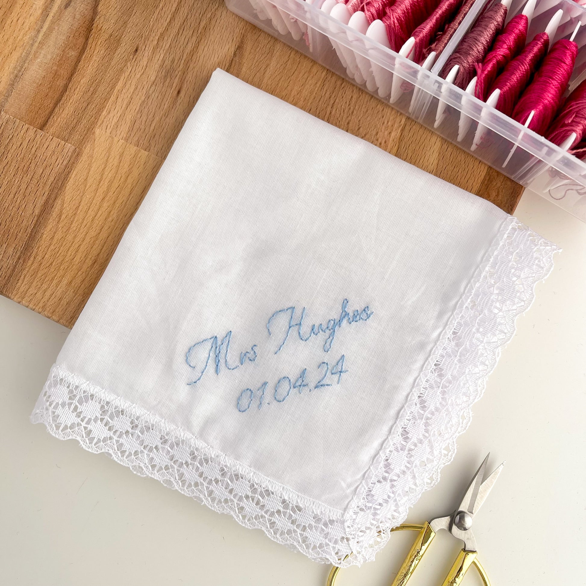 Beautiful hand embroidered, personalised handkerchiefs that can be treasured forever.