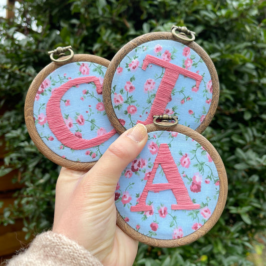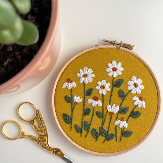 Mustard & Pink Daisy Hand Embroidery Hoop