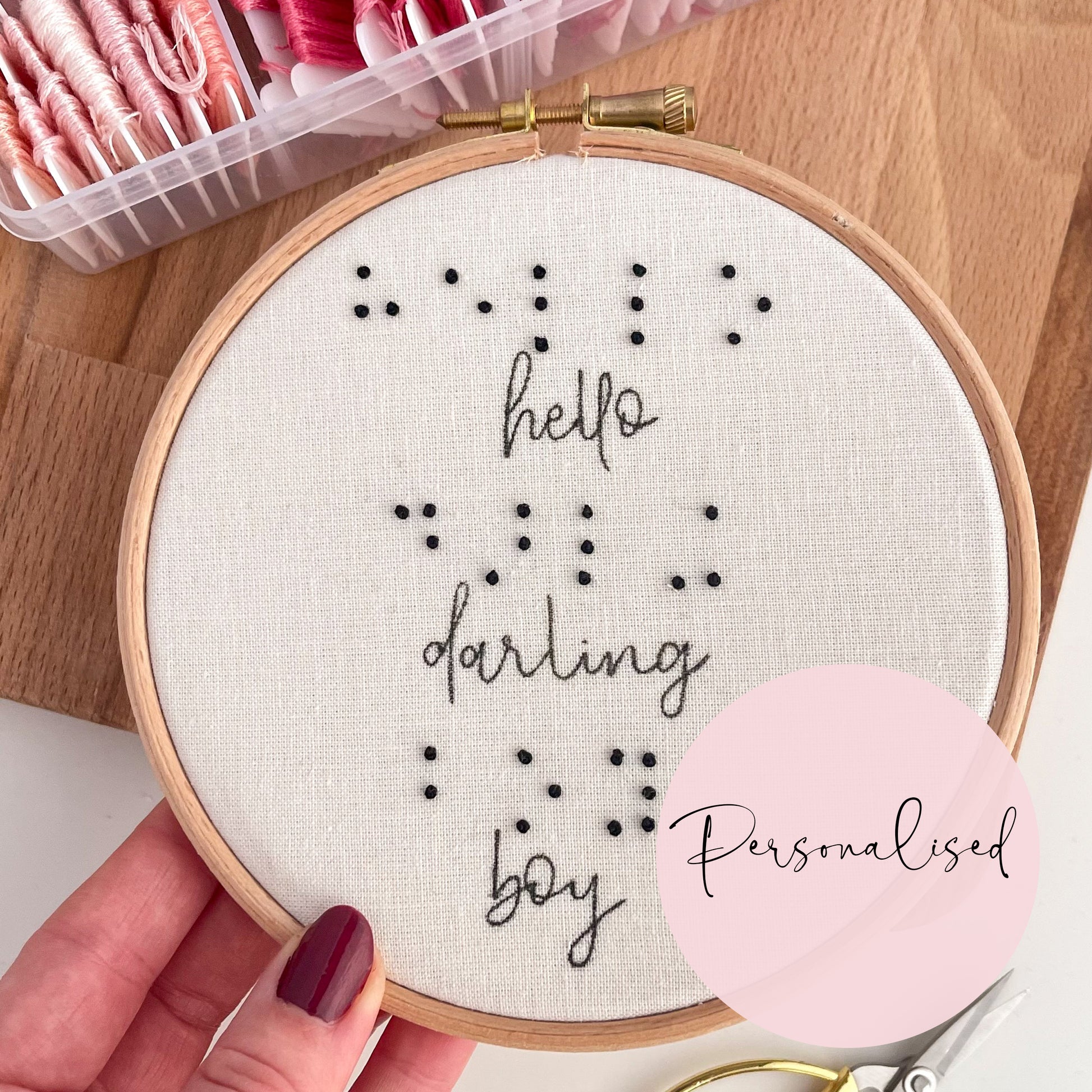 Have any quote or wording turned into braille using Unified Braille Code 2. Braille dots are embroidered, whilst the writing is written onto the fabric, meaning that the braille can be felt to be read, whilst the writing will not obstruct this.