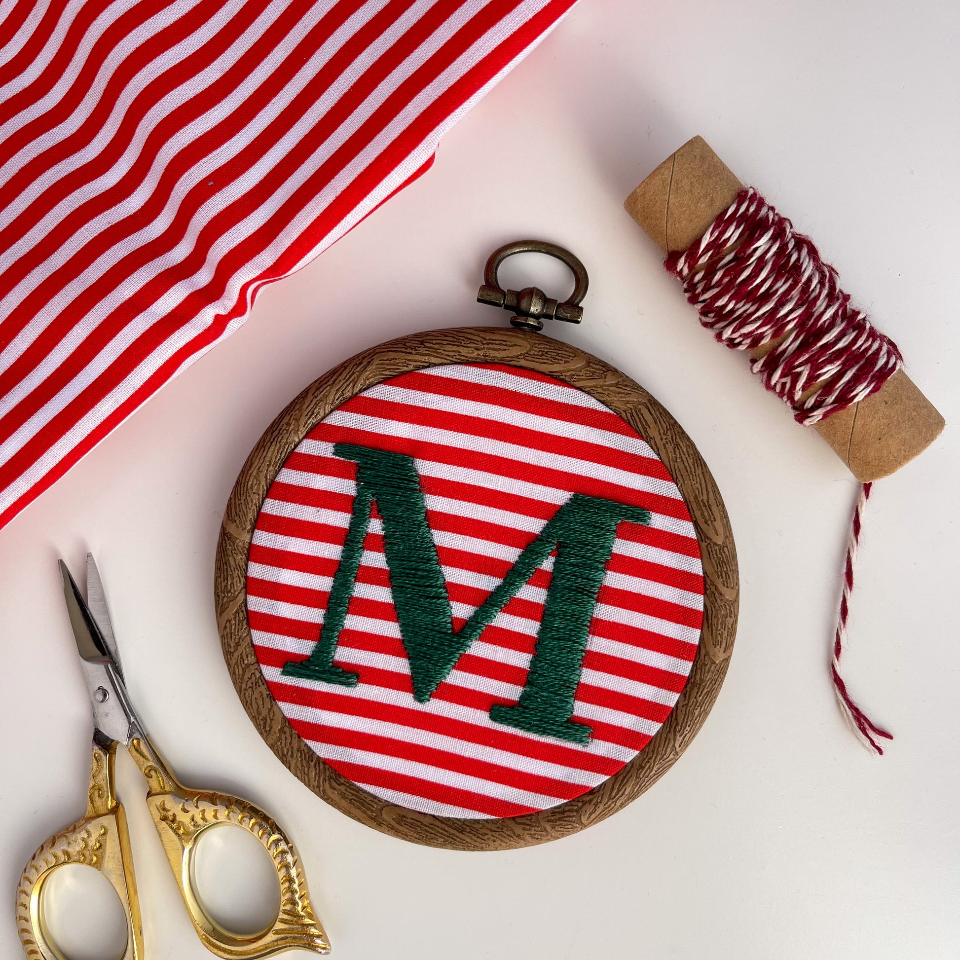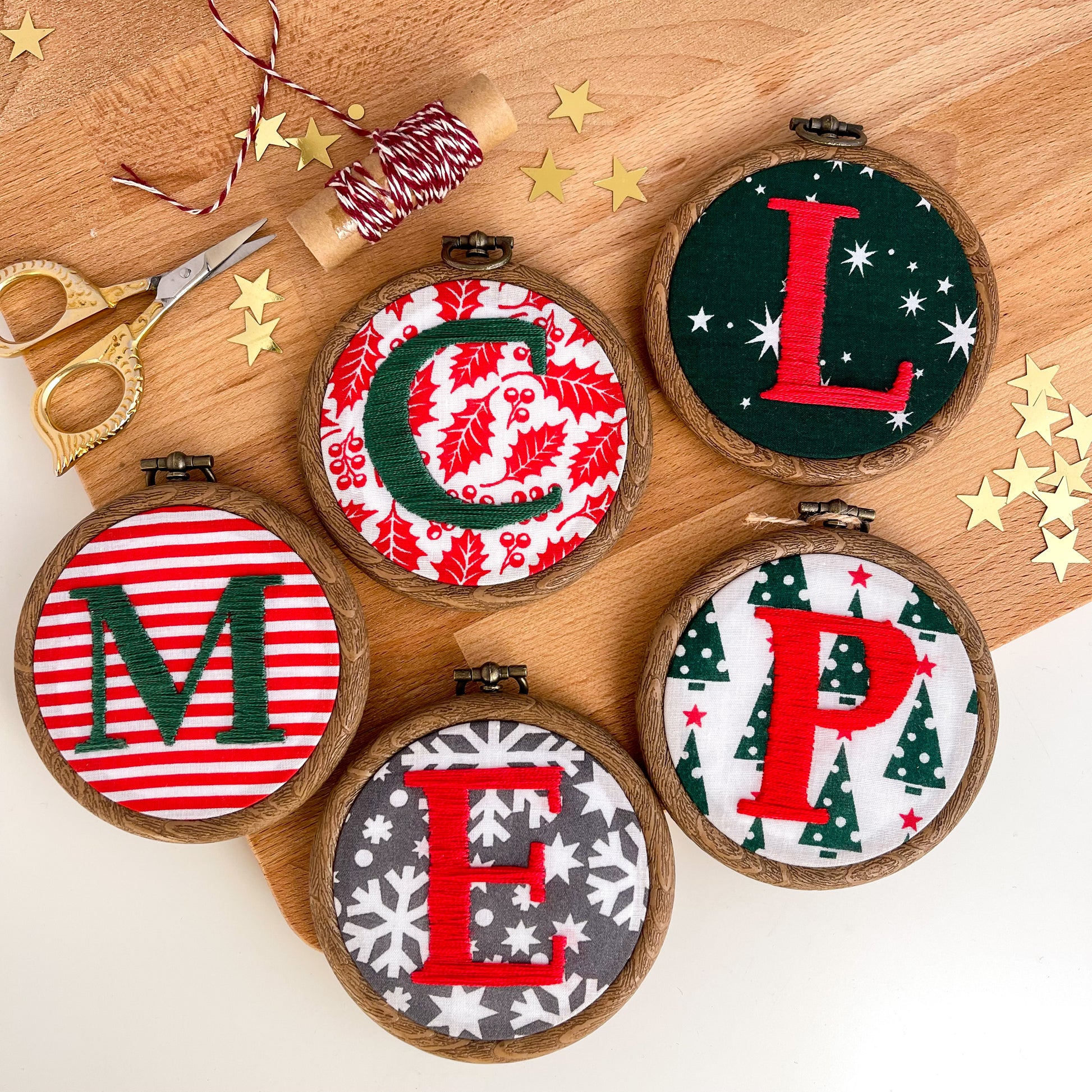 Embroidery Hoop with any initial, perfect to hang on your Christmas tree!